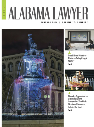 Partner Douglas B. Hargett was published in the Alabama Lawyer. Douglas co-authored a business litigation article entitled “Minority Oppression in Limited Liability Companies: The Birth of a New Claim or a Hole in the Law”, 77 Ala. Law 36 (2016). The article addresses the rights and duties of minority and majority owners in LLCs, closely-held corporations, partnerships and sole proprietorships.